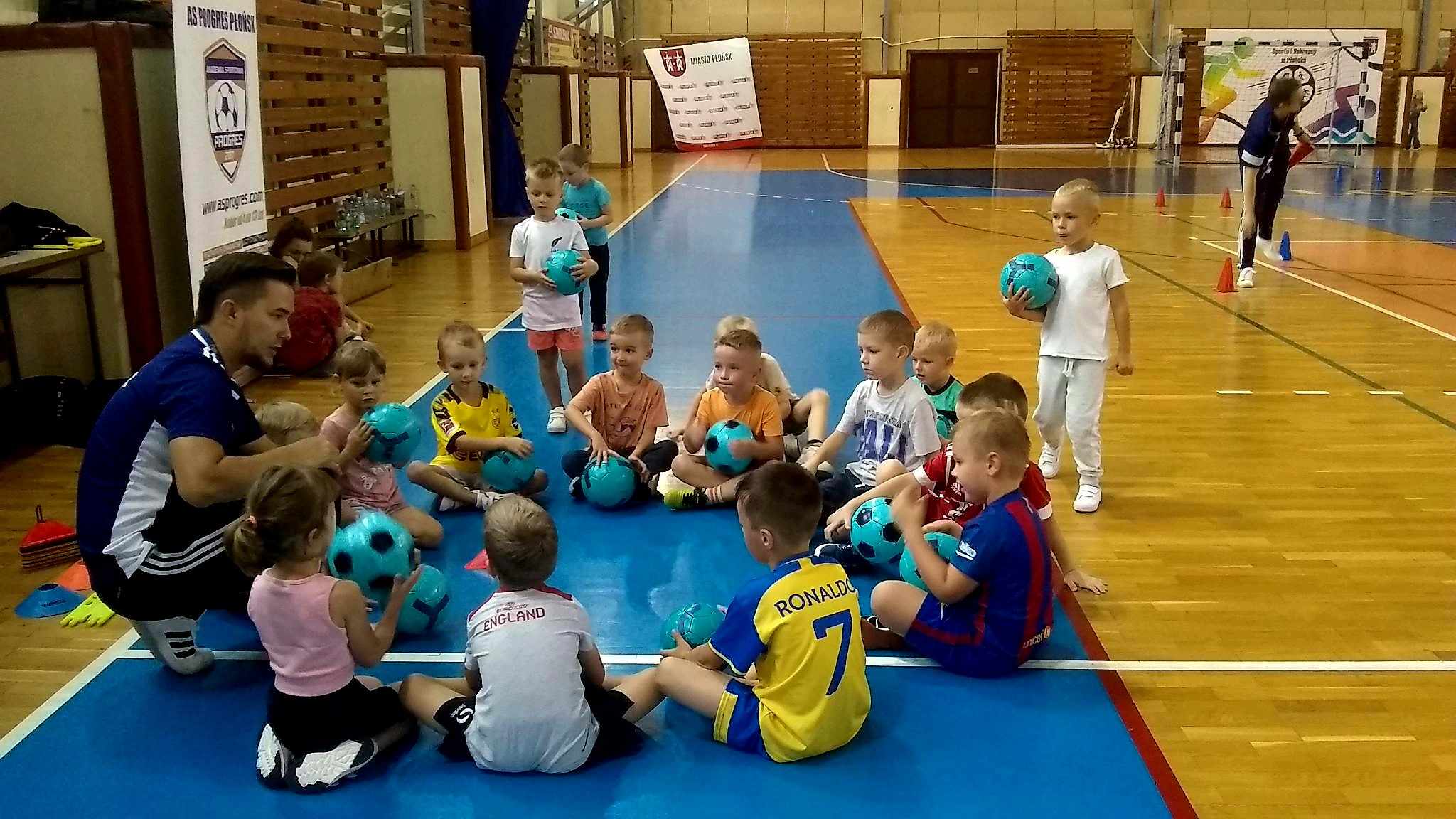 To był ich pierwszy trening. Był fajny i bardzo udany. Nowa grupa początkująca „Piłkarskiego Przedszkola” Progresu zaczęła swoją przygodę z piłką nożną na Hali Sportowej MCSiR Płońsk.