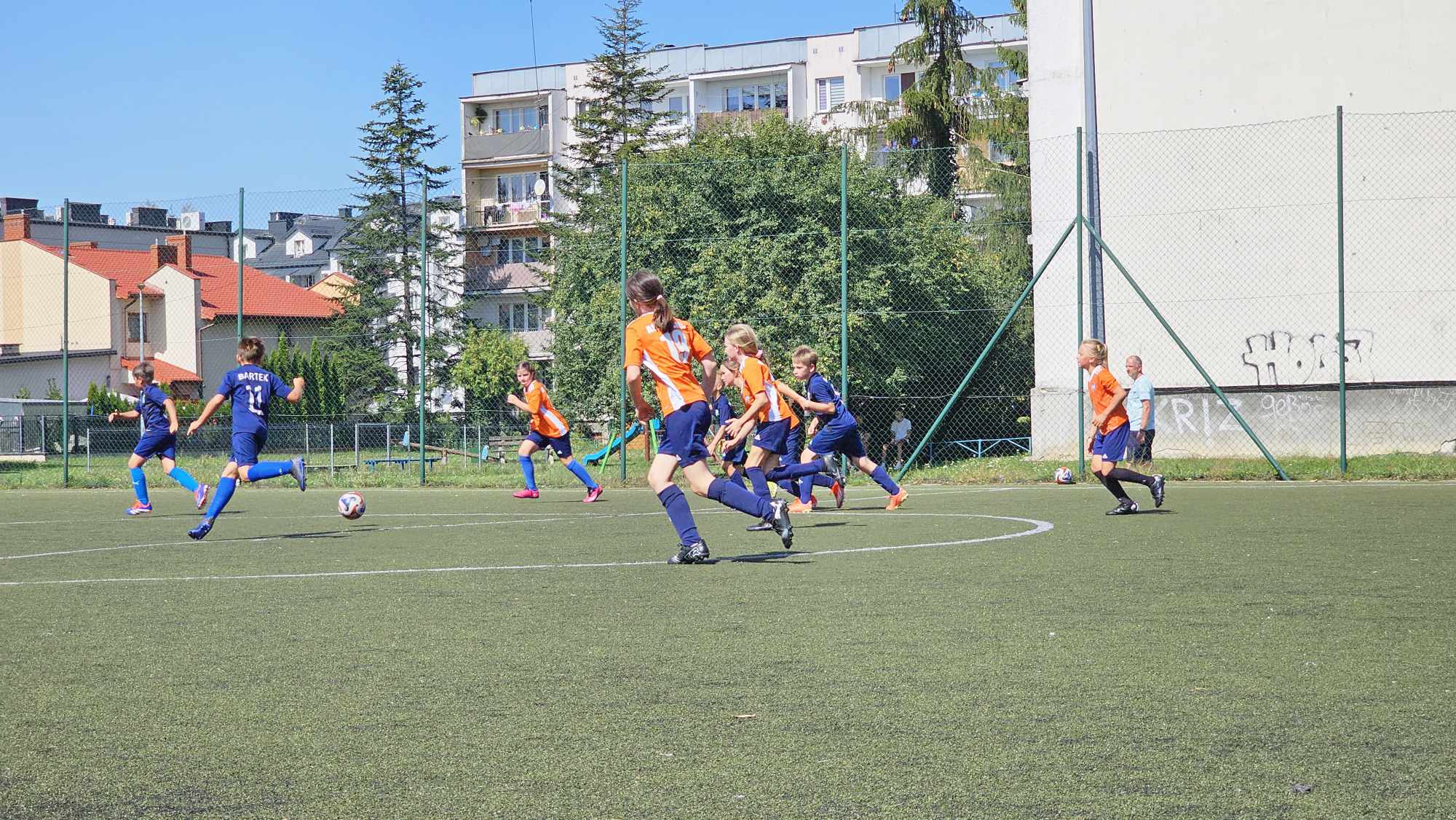 W sobotę rozpoczęliśmy rozgrywki ligowe sezonu 2024/2025. Pierwszy mecz w kat. Orlik E1 przypadł drużynie składającej się w całości z dziewczynek. Nasze zawodniczki postawiły przeciwnikom trudne warunki i na tle chłopców prezentowały się bardzo pozytywnie. Była walka, zaangażowanie i pozostawione pozytywne wrażenie. Brawo! Lepsi nieznacznie dzisiaj goście, ale dziewczyny same zapowiedziały, że mogą zagrać jeszcze lepiej. Gramy dalej.