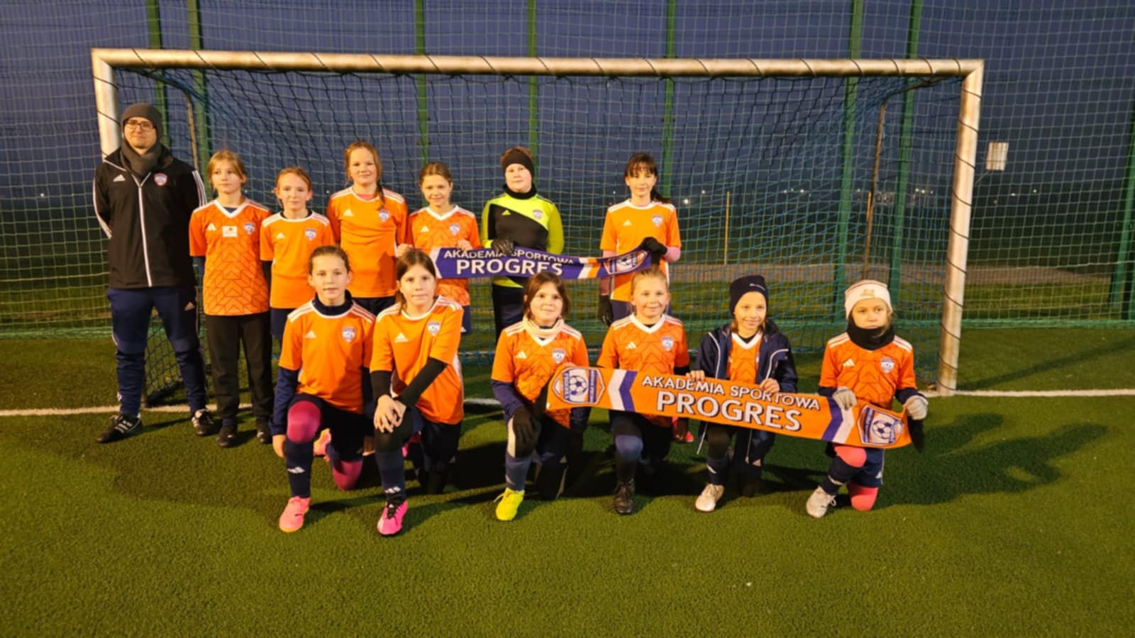 W piątkowy wieczór nasza drużyna dziewcząt rozegrała kolejne spotkanie ligowe w kat. Orlik E2. W bramce nasze zawodniczki wspomógł Mikołaj, a wszyscy zagrali fajny mecz zakończony wygraną. Brawo Progres za walkę, strzelone bramki i zaangażowanie.