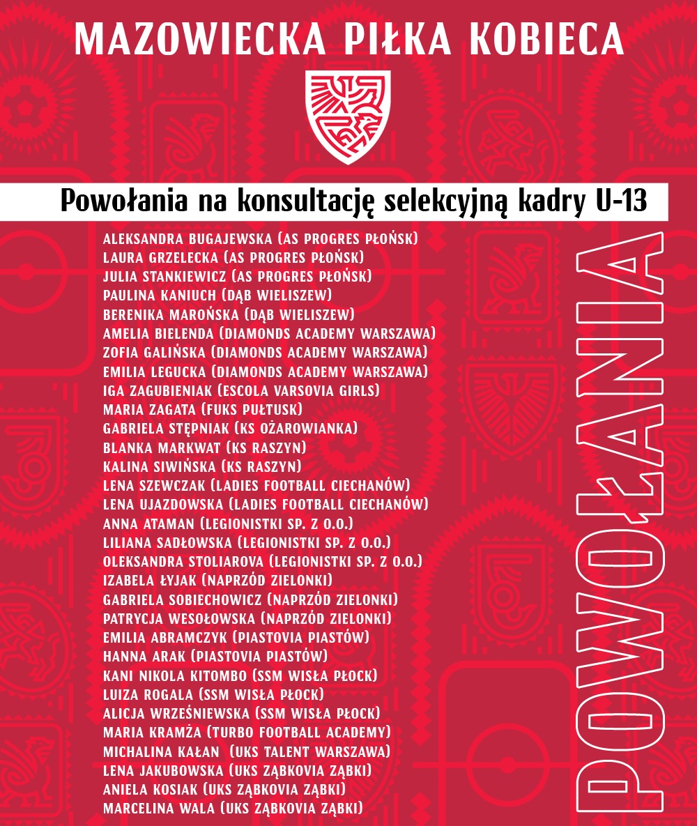 Trzy zawodniczki z naszego klubu: Aleksandra Bugajewska, Laura Grzelecka i Julia Stankiewicz, otrzymały powołania z MZPN na konsultację selekcyjną dziewcząt w kat. U-13. Konsultacja odbędzie się w Warszawie przy ul. Łazienkowskiej 3. Brawo dziewczyny i życzymy powodzenia.