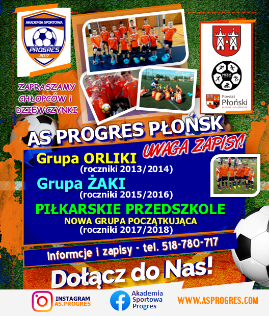 Akademia Sportowa Progres Płońsk zaprasza w swoje szeregi chłopców i dziewczynki. Zapisz swoje dziecko do poszczególnej grupy treningowej i zacznijcie z nami swoją przygodę z piłką nożną!